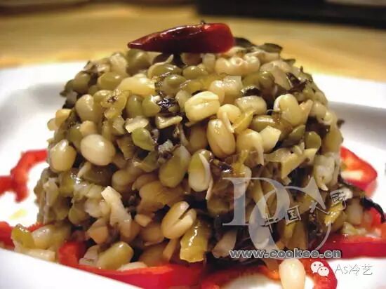 亮点:将绿豆泡出的豆仁和雪菜搭配做凉菜,选料新颖,很适合夏天推出,在本店几乎桌桌必点。
