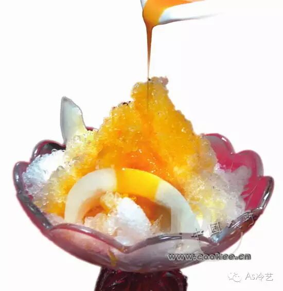王飞点评:这道菜中的碎冰模仿了西餐中的冰沙,冰沙在中餐领域很少用,如果换成冰沙会更好。