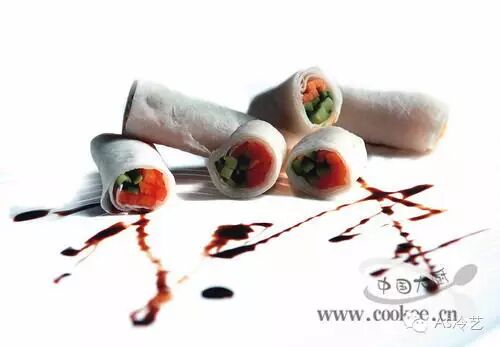 制作:木瓜去皮去籽洗净切二粗丝,黄瓜去瓤切二粗丝,用春卷皮将两种丝卷成卷,改刀成段装盘,上菜时跟味碟蘸食即可。