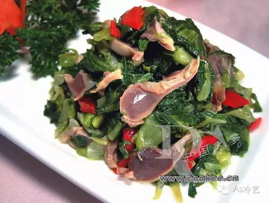 味型: 捏菜碧绿爽脆,鸡肫鲜嫩,口味咸鲜。