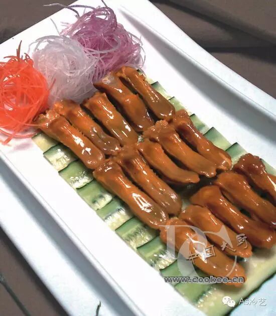 创新点:吸取烧烤特色,将鸭舌用烤制方法制熟做成凉菜。