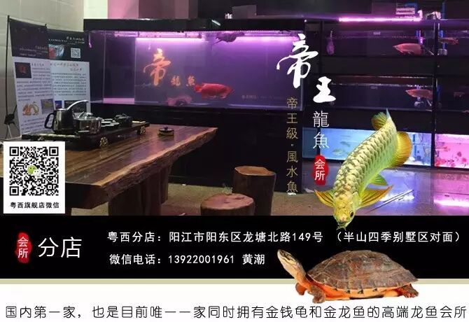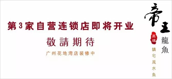 “帝王龙鱼”是国内资深龙鱼玩家深哥于2012年在广州开设的高端风水龙鱼品牌会所,至今已走过五个年头;阳江分店于2016年1月1日开业(第三家自营连锁店也在装修中,预计2017年中开业)。现已发展成为印尼帝王辣椒红龙和霸王战车红龙鱼国内总代理,深哥繁殖的帝王金钱龟和安缘龟同样以血统纯正著称。是国内第一家,也是目前唯一 一家同时拥有金钱龟和金龙鱼的高端风水宠物会所。
