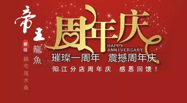 “帝王龙鱼”分店周年庆 感恩回馈,2017年1月1日-30日,在帝王龙鱼总店和分店购买任一款红龙鱼均可获赠价值3800元的顶级纯血统皇冠魟鱼一只(公鱼)。