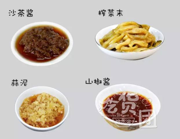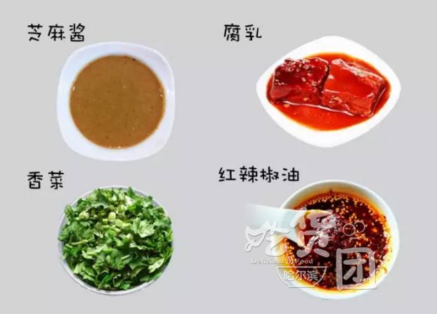 搭配:芝麻酱、腐乳、香菜末、红辣椒油