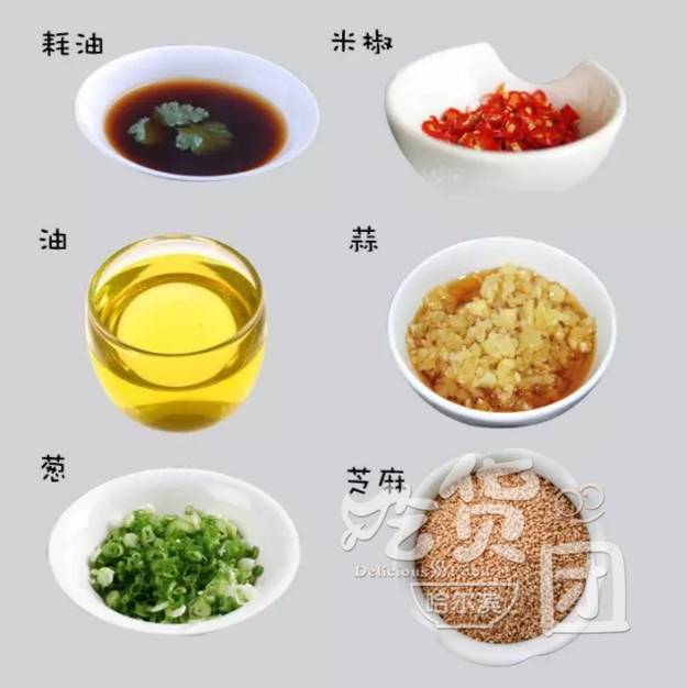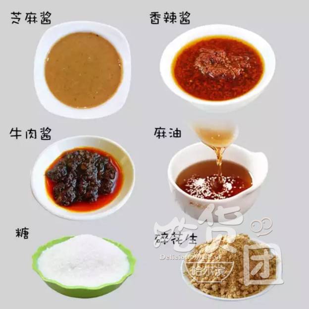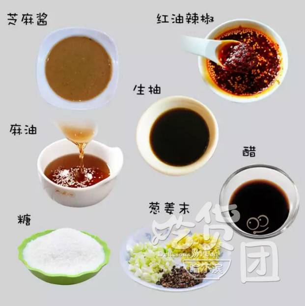 搭配:芝麻酱、红油辣椒、麻油、生抽、糖、醋、葱姜末