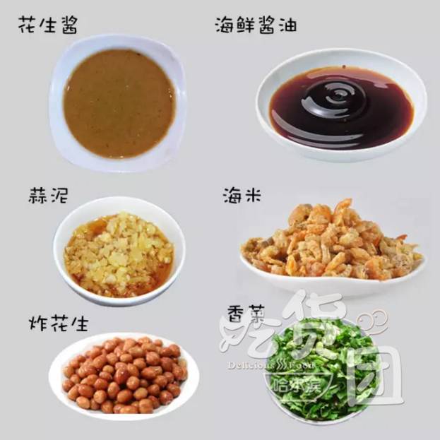 搭配:辣椒油、香油、蒜泥、碎花生、香菜