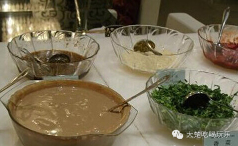 秘方二:芝麻酱打底配腐乳蒜泥,香菜韭菜花。