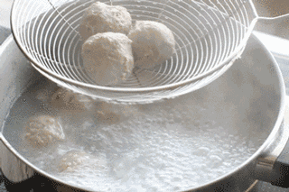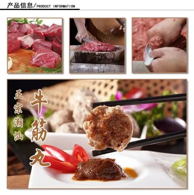 潮汕人做牛肉丸,一般会用现宰的本地黄牛,从屠宰到做成丸子,一般不超过六个小时。通常使用运动频繁、油脂较少的牛后腿肉,两支铁棒槌反复捶打,打成肉浆后,继续和配料搅拌、捶打成胶状。捶打的作用,是在不砍断纤维的情况下,打碎部分细胞,释放蛋白质;而充分搅拌,是为了加强游离的肌球蛋白的凝胶作用,让肉质更加紧实。