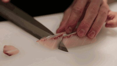 作为最为常见的刺身,鲷鱼也是在日本最受推崇的。鲷鱼肉质偏白透明,肉质紧实,常见做法有普通刺身和松皮刺身。松皮刺身是用开水烫过表皮之后,带皮切成两片连一起的刺身,相对来说,嚼劲十足。