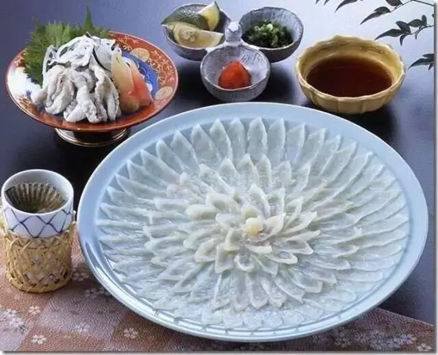 河豚在食用前需要精心准备,把可食用的鱼肉与有毒的内脏仔细地分开。日本厨师为了获得烹饪河豚料理的资格,需要经过几个月的培训,并通过一项苛刻的考试。只有30%的应试者能够通过。切得晶莹剔透的河豚肉被摆成菊花的形状,透明得能看见盘底的花纹,刺身下面堆放着一点鱼皮。