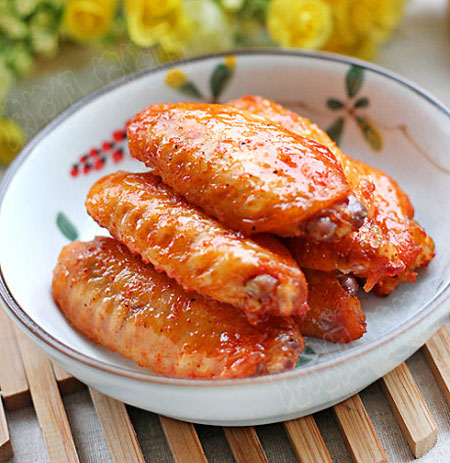 小贴士:烤肉前刷些料汁上去,颜色和味道会更好;腌制时料要放够,水不要放多,因为鸡翅本身就有多余水分。
