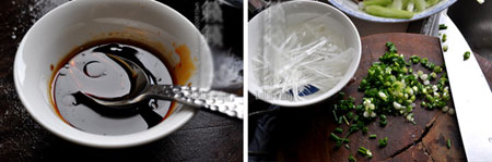 蒜泥里面加入盐1/2茶匙、鸡精1克、生抽1汤匙、山西老陈醋1汤匙、辣椒油1/2茶匙,调成味汁。