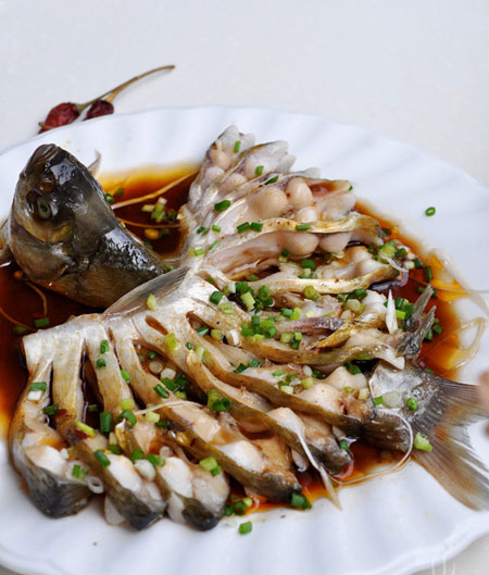 说起清蒸武昌鱼,湖北名菜堪称鄂菜代表,鱼肉味腴细嫩清鲜透滑,鲜香四溢。清蒸武昌鱼既是诸多荆楚风味酒楼的镇店菜,也是寻常百姓家隔三岔五的家常菜,作法大致雷同无非四个步骤,腌制——清蒸——浇汁——淋油,但你会发现,这道菜往往酒楼做得更漂亮些,尤其是仿若孔雀开屏式的摆盘方式让人眼前一亮。