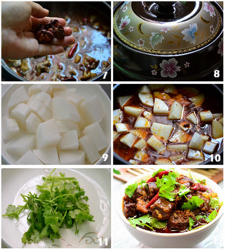 小贴士:1、加入山楂的目的是使牛腩更容易软烂,可以不放。2、萝卜不与牛腩一起入锅,是为避免萝卜抢了牛腩的味道,口感不佳。