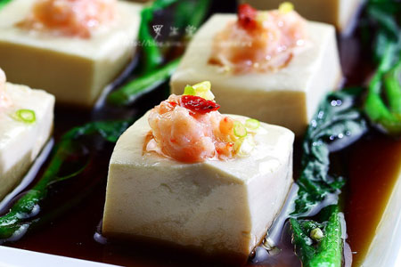 豆腐和鲜虾的结合是唯美的,清淡不失品格,脂肪含量极低,蛋白质高,热量适中,尤其美容。