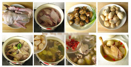 材料:活草鸭;芋艿;枸杞;葱;姜;料酒;盐;按照江南的习俗,中秋节是还要吃鸭子、芋头、毛豆的。在月圆人团圆的家宴上,一定是少不了一道芋艿鸭子汤的。