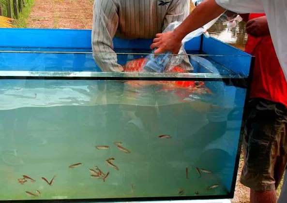 不过,不论如何,常常却只有30%在右的幼鱼可以存活。故如今,在繁殖技术已经更加成熟之时,技术人员通常在产卵后约14天在左右,趁小鱼已经逐渐孵化之初,便从雄鱼口中摇出仍带着卵粒、刚孵化的小龙鱼。