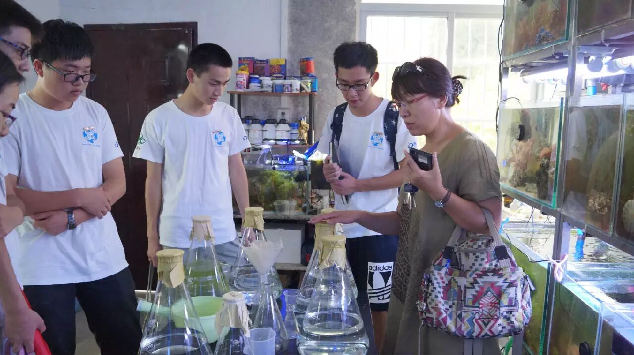 集美大学水产学院的王淑红副教授接待了实践队一行,带领队员们参观了水产科技楼的实验室,并向队员们简要介绍了该学院几大实验组的研究方向,加深了实践队员对水产养殖专业的认识和了解。王淑红副教授重点介绍了水产生物与育种实验组的研究内容和,尤其详细地讲解了该实验组近年来的研究新方向——珊瑚和观赏性鱼类的培育。