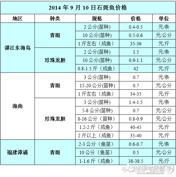 以下是湛江东海岛、海南和福建漳浦地区石斑鱼鱼苗和成鱼的价格: