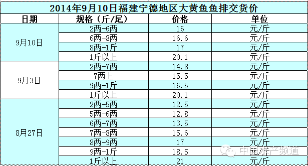 以下是福建宁德地区大黄鱼的鱼排交货价: