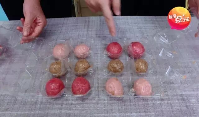 牛肉丸和虾丸的做法和猪肉丸一样,在1斤牛肉和虾肉中分别加2勺盐、2勺淀粉、2个蛋清和少许姜末,搅打起胶后放入鸡蛋盒里。▽