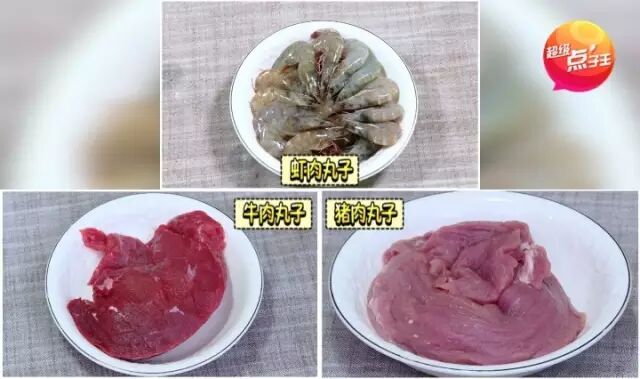 今天邓大厨教大家做三种肉丸子:猪肉丸子、牛肉丸子和虾肉丸子。想要肉丸质量好,选料很重要,牛肉和猪肉要选择无筋膜的精肉,里脊肉是最好的。▽
