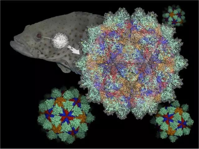 这个研究首度发现,此病毒表面均匀密布了 60 颗高对称性的突出单元,每颗突出单元各由 3 个外鞘蛋白所组成,结构相当复杂精细。突出单元的功能像是“钥匙”,与鱼类细胞膜上的受器结合后,可以开启鱼类细胞膜大门进而造成感染死亡。