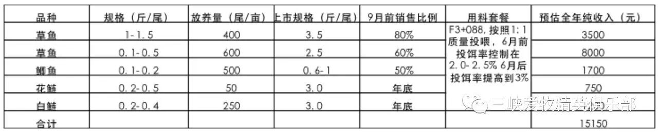针对草鲫热水鱼混养模式,从表二中可以看出能够在9月前成鱼达到上市规格并尽早销售,能够达到最好的经济效益。这种高效模式,每亩成鱼纯收入可达15000元以上,结合正大1262推广模式,该模式用料2吨(1吨F3+1吨088),饲料、鱼药、电费等其他成本合计约为1万元/亩,纯收入突破5000元/亩!