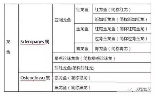 龙鱼在动物学分类上属于脊索的动物门鱼纲骨舌鱼目骨舌鱼科的Scleropages属和Osteoglossum属,其下可以分为多个品种,如银龙鱼、黑龙鱼、亚洲龙鱼、珍珠龙鱼、星点珍珠龙鱼等,其中亚洲龙鱼又可分为红、金、青三大品系。