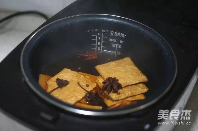 把豆干加到电饭煲里煮至10分钟。