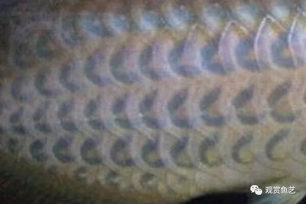 龙鱼马蹄印指在龙鱼鳞片上能看到发蓝头的半圈印,形状类似马蹄色泽为青色,使鳞片看起来颜色较深。