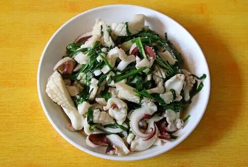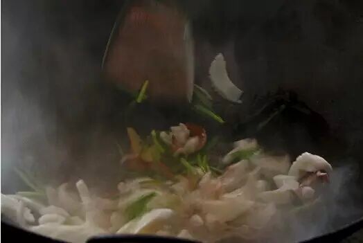 这是一道家常小菜,郑航烧上热油,不久就炒出了一盘热气腾腾,香远飘久的“墨鱼炒韭菜”。 ![]()