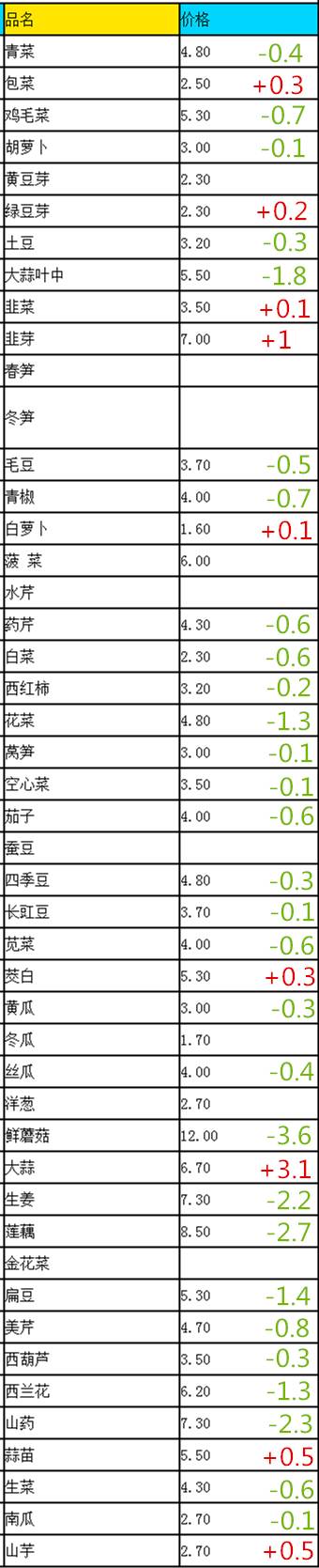 我们来看看今天苏州市部分农贸市场的蔬菜价格: