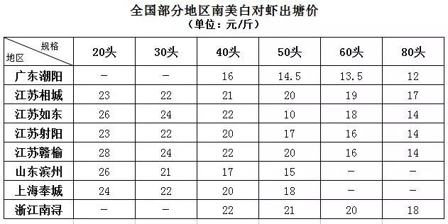 本周因为市场销量差、个别地区甚至有滞销现象出现,导致珠三角地区、湛江东海岛地区和福建地区的虾价相比上周下降了0.5-2元/斤;海南西线地区因台风过后,对虾发病死亡多,造成对虾供应紧缺,虾价相比上周上涨了0.5-2元/斤;江苏连云港地区的对虾销量和供应量都很平稳,相应的价格方面也没有明显的波动变化。