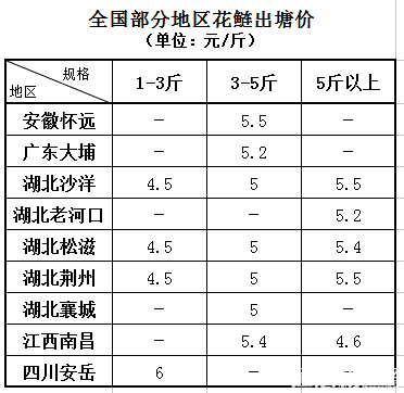 下面是全国部分淡水鱼出塘价格,有出鱼需要的朋友可以参考: