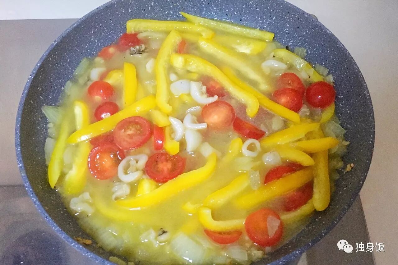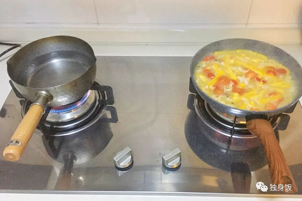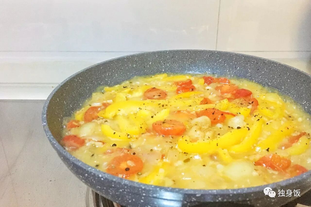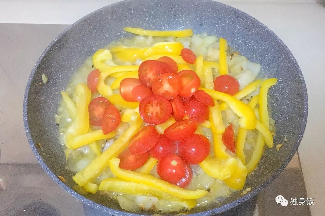 6. 炒彩椒和番茄时稍微加一点点热水,容易让他们变软