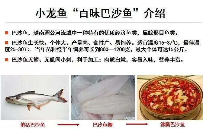 如今巴沙鱼是东南亚国家重要的淡水养殖品种。越南是世界上最大的养殖生产国,越南音译为“卡巴沙”,意思是“三块脂肪鱼”,因为该鱼在生长过程中,腹腔内积累有三块较大的油脂。巴沙鱼生长快,产量高,出肉率比一般鱼高很多,物美价廉,属于优质的经济鱼类。