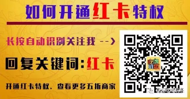 任丘全攻略【红卡】是精心为任丘网友打造的一张吃喝玩乐折扣卡。此卡可以在任丘众多店面消费时享受指定时间段内每家每月一次的独享超劲爆的优惠(低至5折啊),让您省钱省到哭~(具体以商家公布的5折优惠形式为准)。