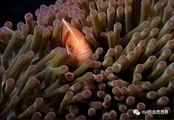 ▲粉红海葵鱼生活在海葵中