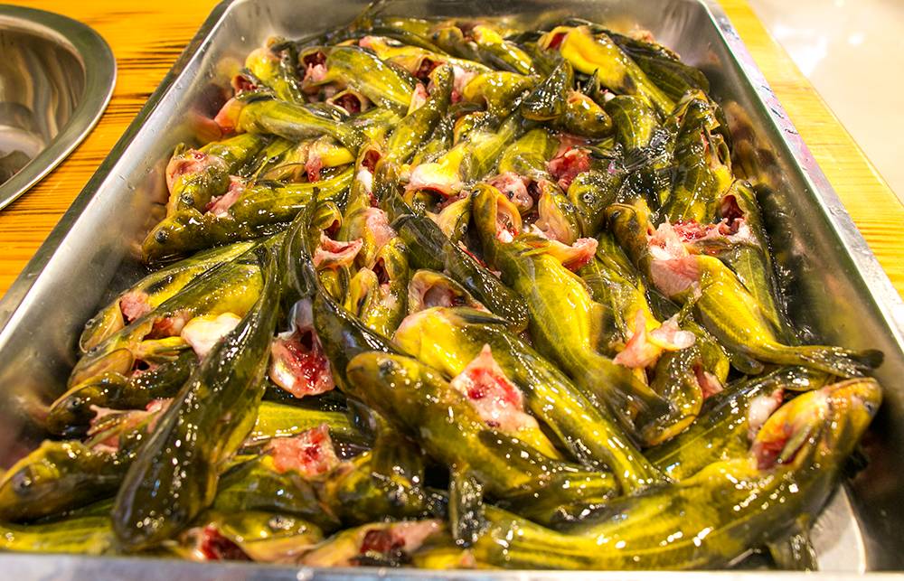 烹饪前,鱼苗都要用手仔细的清除内脏