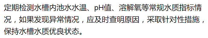 养殖水槽每20天左右使用一次消毒药物,使用时先开启底增氧系统,然后关掉集中供气气阀,水槽两端用塑料薄膜挡板挡住,与外界隔绝,然后泼洒药物进行药浴,一般时间在半小时左右,结束后抽调挡板,开启集中供气气阀。