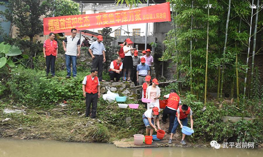 6月6日是全国增殖放流日,为全面贯彻落实“河长制”工作责任制,进一步实现“以鱼洁水,以鱼养水”,不断改善岩前溪流域水质和水域生态环境,促进生态文明建设。上午,岩前镇增殖放流活动在岩前溪流域老灵岩村村部河段举行。