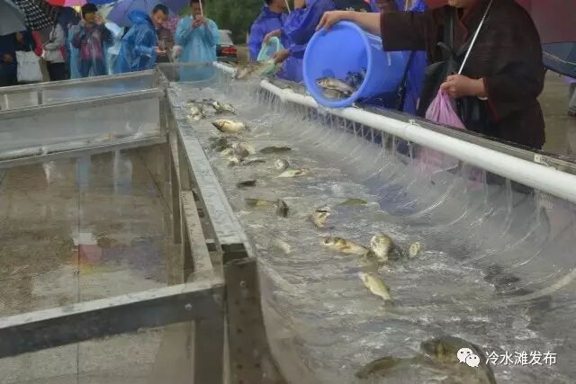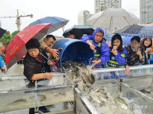 当天,雨虽然淅沥沥地下个不停,气温也突然下降10多度,但丝毫不影响前来参加活动的市民,他们或打着伞,或穿着雨衣,提着大桶子穿梭在放流槽和取鱼苗处之间,鱼儿欢跃着钻入河里画面,映亮了放鱼市民的一张张笑脸。