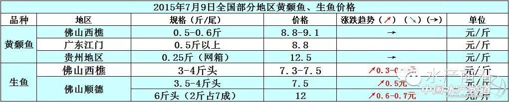 中国水产频道原创报道,据悉,本周,各地黄颡鱼市场销量比较平稳,加上养殖户担心黄颡鱼发病死亡而大量抛售黄颡鱼,致使黄颡鱼上市量剧增、市场供应过于饱和,短期内各地黄颡鱼的价格上涨都受到了限制,整体鱼价趋向稳定;外省地区的生鱼已经基本清塘了,现有存塘量很少,市场上销量的多数都是广东地区的生鱼,所以现在广东地区的生鱼价格开始回暖上升,后市鱼价趋向上涨。具体价格如下: