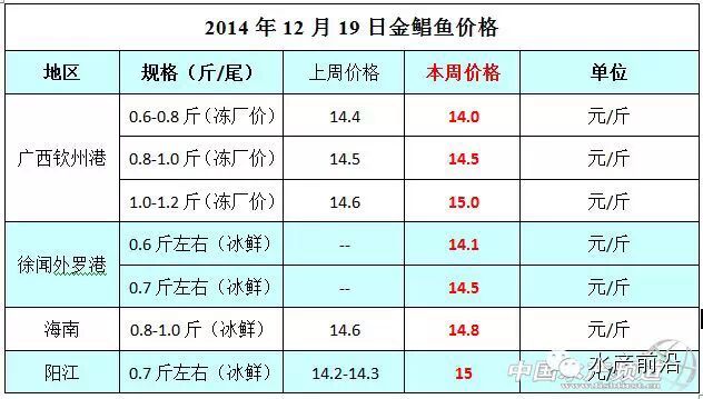 (以上数据由中国水产频道自主采集,价格及观点仅供参考。)