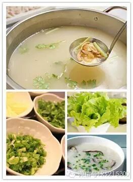 吃完鱼肉便可以加入适量的蔬菜及米饭开始熬粥啦。吸收了鱼汤及鱼肉的鲜美,碗里的粥也突然变得高大上起来,再加入姜丝、芹菜、葱,还有店家特制的菜埔,实在好吃到爆,果然浓缩的才是精华啊!