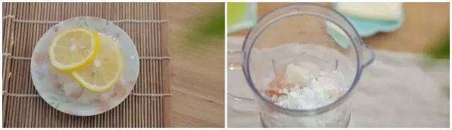 2. 去掉柠檬片,将鳕鱼肉倒入料理机,加入10g淀粉和蛋清。