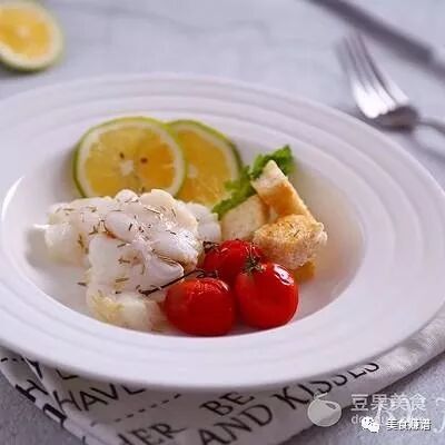 2、处理好的鳕鱼放在盘中加少许盐、柠檬汁和橄榄油腌制20分钟