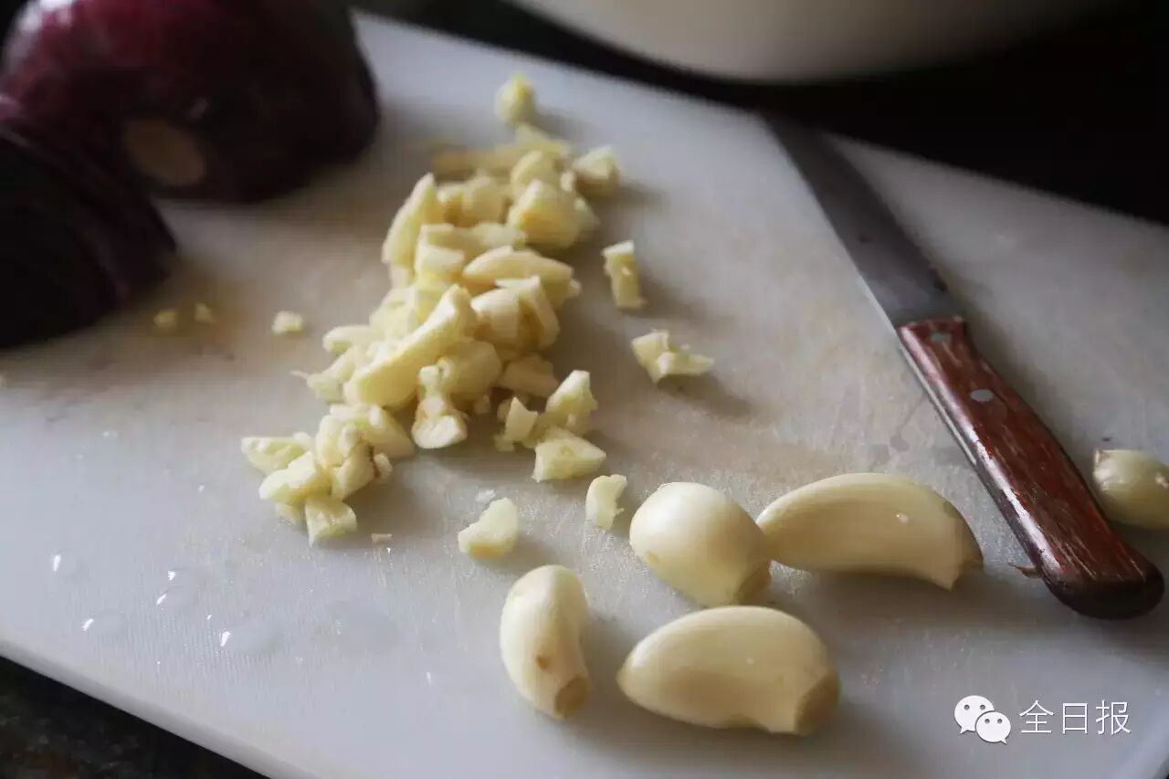 tip:如果你是真诚的大蒜爱好者,推荐你留几颗完整的蒜瓣,因为在烤箱里蒜瓣会变软糯,非常好吃。