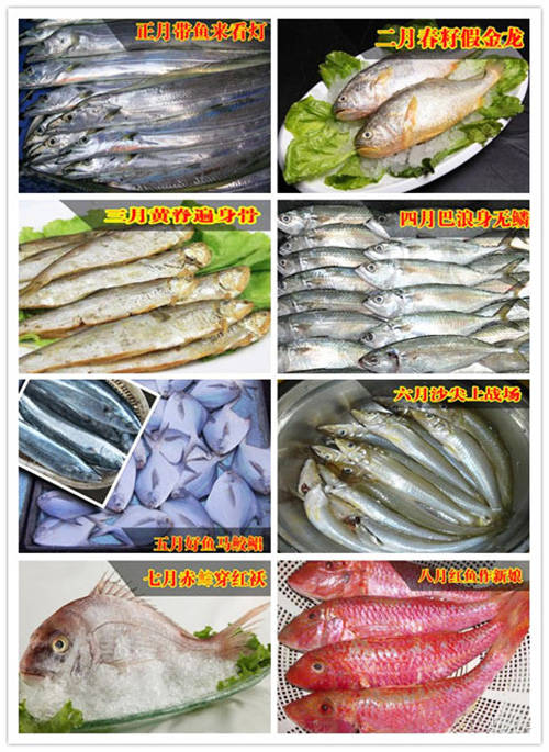 那么什么季节适合吃什么鱼呢?相信流传的这首渔名歌,会给大家留下一个深刻的印象。它以常用的十二月歌的形式,总结渔汛,并指出家常海鲜的进食时令。收藏起来,以后哪个时节适合吃什么海鲜就不用去问人了~